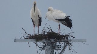 おはようございます。今朝は6時半過ぎからコウノトリの観察でした。ペアが電柱上にいて、交尾をまたしていました。交尾の様子は下線部をクリックしてごらんください。トップ画像は交尾後のペアです。