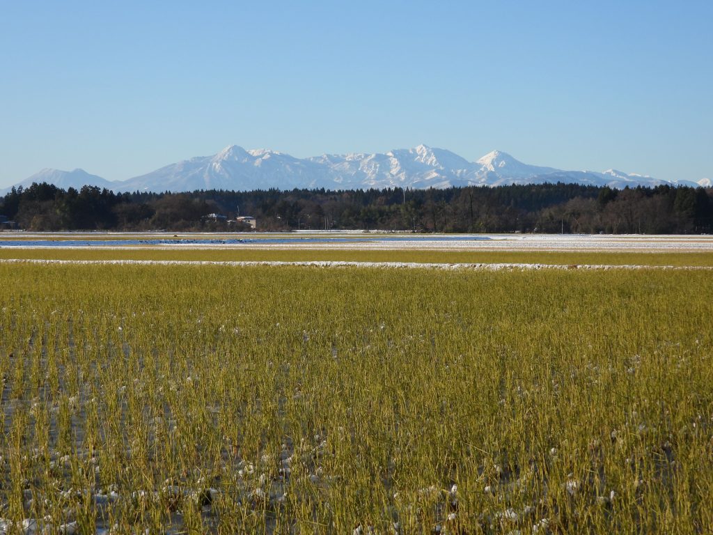 今朝は冷え込みました。車のフロントガラスも凍りました。外に出たら頸城三山が朝日を浴びてきれいでしたので、毎年、初冬の風景として必ず撮影する小苗代の田んぼや頸城三山がよく見える場所へ行きました。トップ画像と下の画像がそれです。3枚目は柿崎区百木にて撮影したものです。