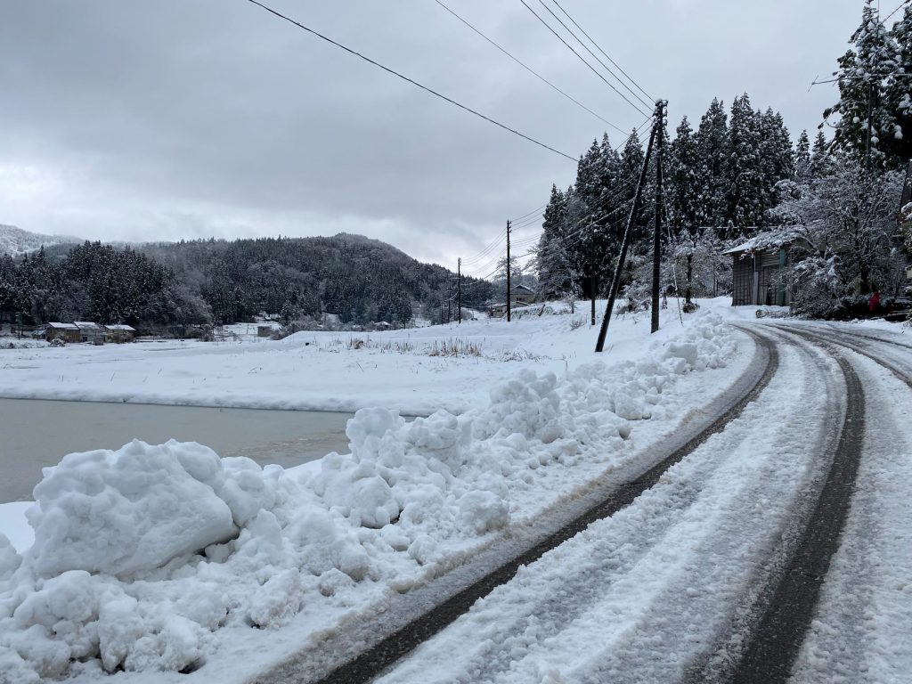市役所を離れてからは安塚区へ急ぎました。新聞に活動レポートを折り込んでもらうためです。新聞屋さんは山間部にありますので、30~40㌢は覚悟していたのですが、20㌢ほどしかなく、びっくりでした。途中、親しくしている人の家に何軒か寄りましたが、そのうちの1軒はケガで入院されていました。数か月、行かなかったこともあって、その期間に具合が悪くなったり、入院されたりという情報を初めて聞いて驚くことが続きました。私を含め、そういう年代になったということです。下は安塚区大原の除雪状況です。