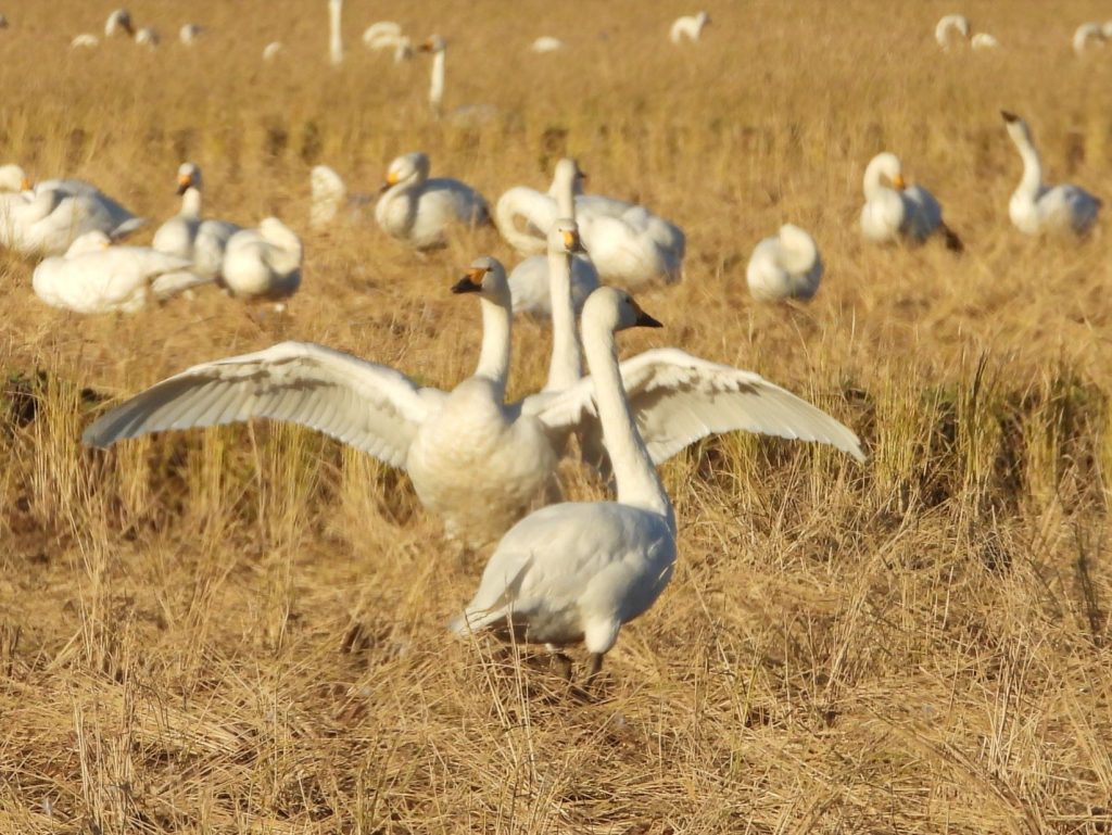 講演が終わってから、コウノトリの様子を見るために三和区をまわって帰りました。コウノトリはいませんでしたが、たくさんのハクチョウと出合いました。ハクチョウも大好きな鳥です。