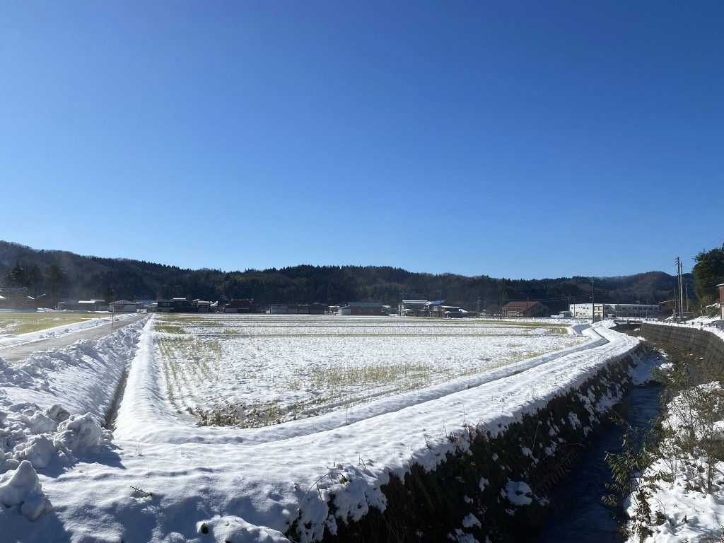 昨日は冬晴れでした。青空が広がり、どこへ行っても絶景ばかりでした。午前は柿崎、そして吉川区の東田中地区で動きました。そこで撮った写真がトップ画像と下の画像です。青空の下、雪があってぽかぽか陽気、めったに見られない景色が出現しました。