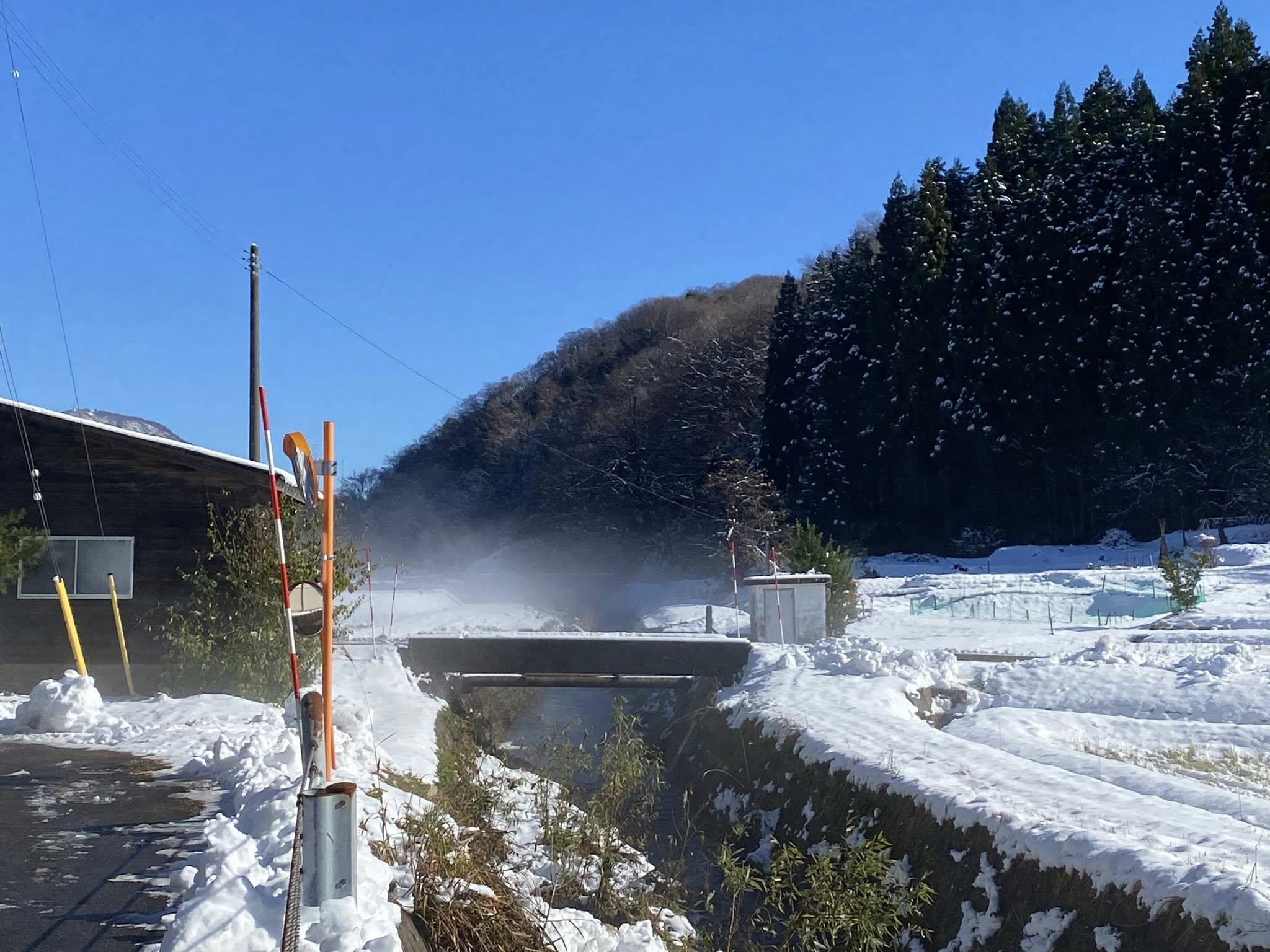 昨日は冬晴れでした。青空が広がり、どこへ行っても絶景ばかりでした。午前は柿崎、そして吉川区の東田中地区で動きました。そこで撮った写真がトップ画像と下の画像です。青空の下、雪があってぽかぽか陽気、めったに見られない景色が出現しました。