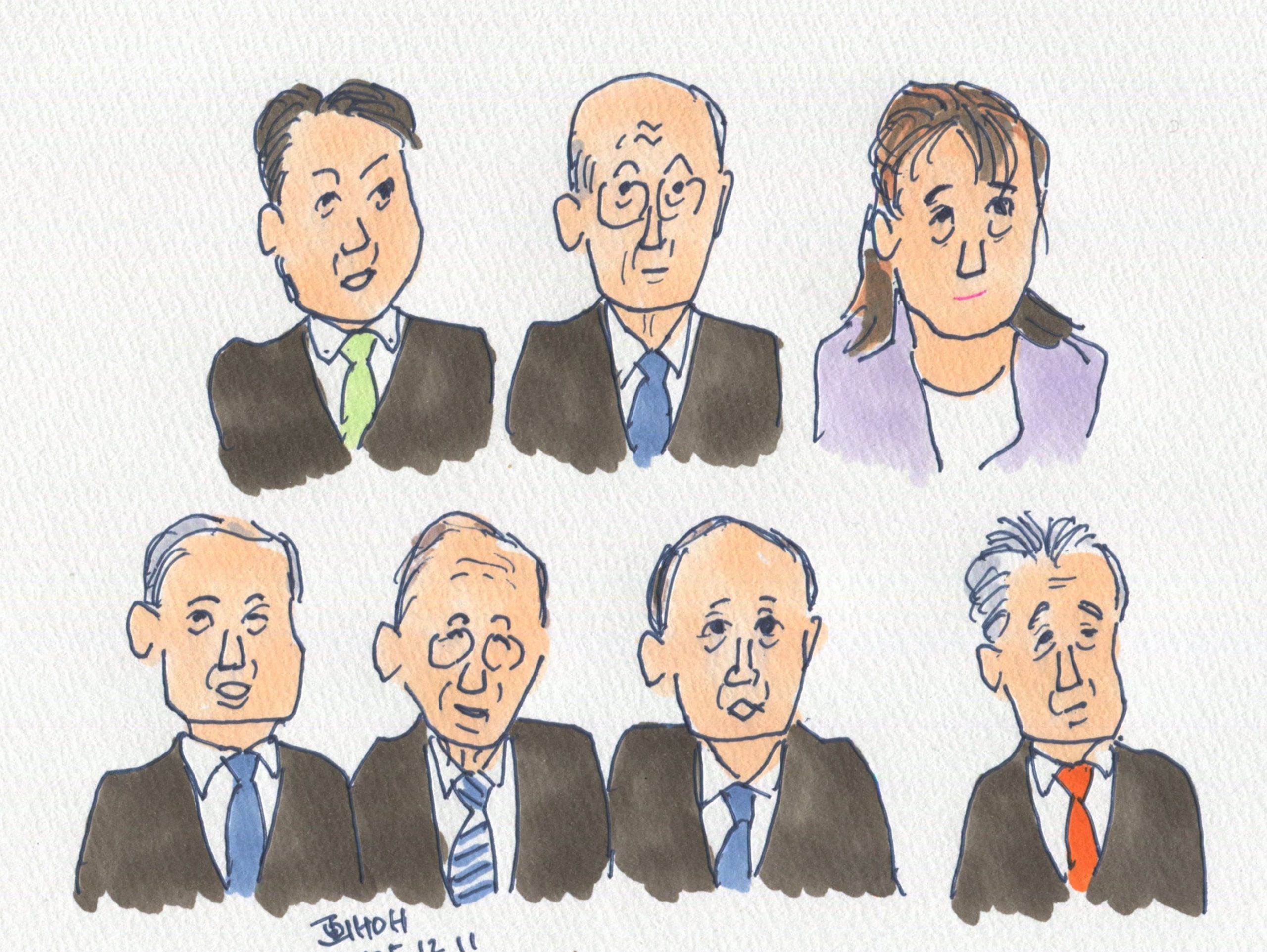 上越市議会の一般質問が昨日からはじまりました。トップの草間議員からはじまって橋本議員まで7人が登壇し、物価高騰対策、医療、子育て、雪対策などで市長や教育長などに質問していました。トップのイラストは登壇した7人を描きました。
