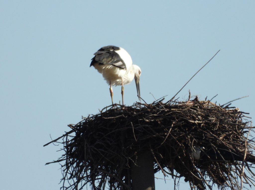 昨日は午前に三和区へ行ってきました。三和区で子育てをしたコウノトリの親鳥ペアは次期繁殖期に備えて、先月30日から巣の手直し作業をやっていたとのことですが、昨日の午前、ようやくその様子を撮影できました。議会でなかなか行っていられなかったのです。実際に巣の手直しをしていたのはメス(個体番号J0482)で、オス(個体番号J0239)は隣の電柱の上にいました。トップの画像はメスです。下の画像も巣の上にいるのがメス、裸の電柱の上にいるのがオスです。動画はこちらでご覧ください。