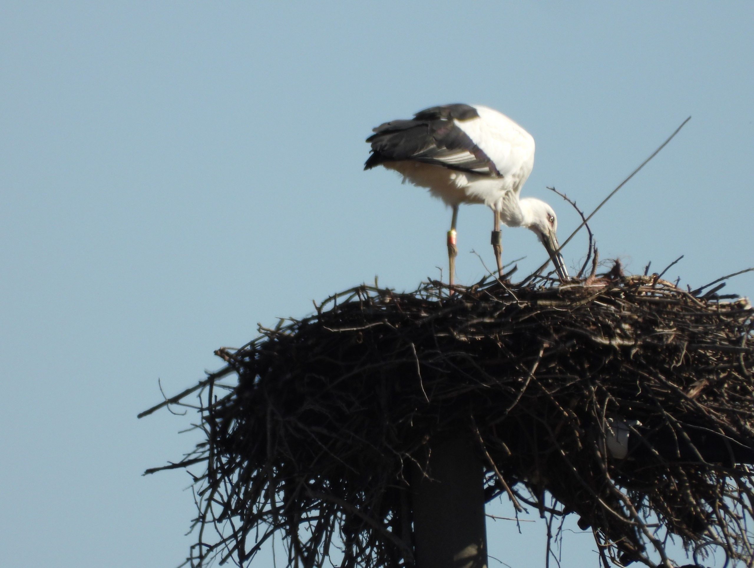 昨日は午前に三和区へ行ってきました。三和区で子育てをしたコウノトリの親鳥ペアは次期繁殖期に備えて、先月30日から巣の手直し作業をやっていたとのことですが、昨日の午前、ようやくその様子を撮影できました。議会でなかなか行っていられなかったのです。実際に巣の手直しをしていたのはメス(個体番号J0482)で、オス(個体番号J0239)は隣の電柱の上にいました。トップの画像はメスです。下の画像も巣の上にいるのがメス、裸の電柱の上にいるのがオスです。動画はこちらでご覧ください。