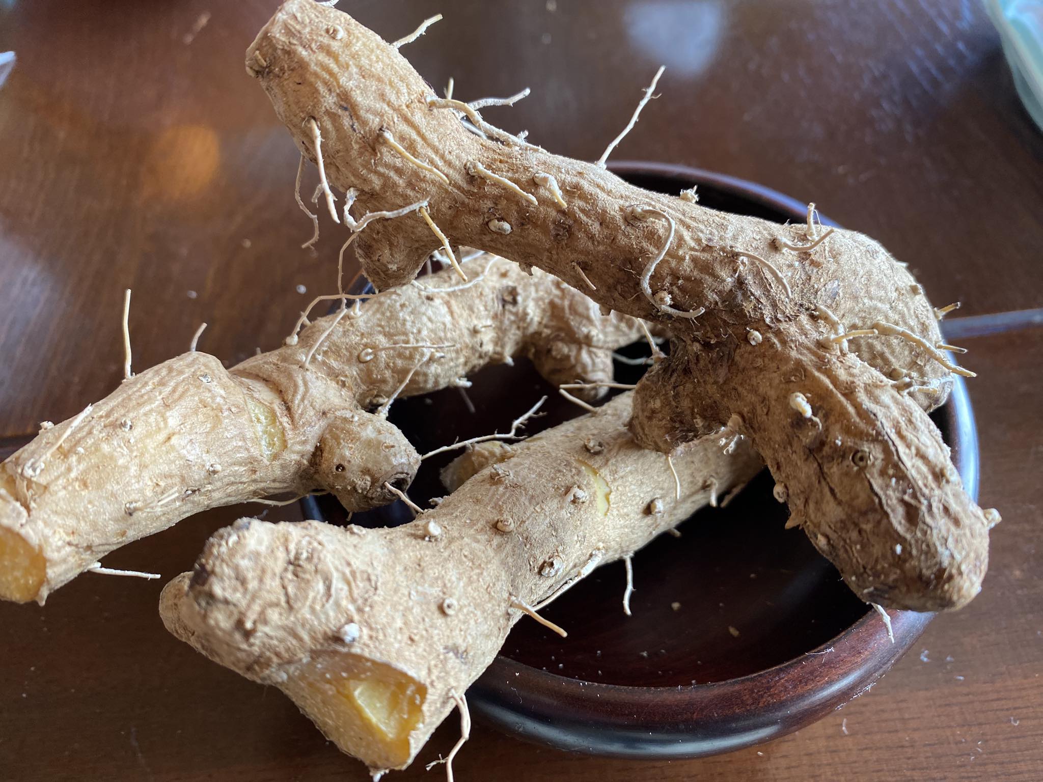 お昼少し前に訪ねた家では、お茶をご馳走になりました。活動レポートのこと、子どもさんたちの帰省のこと等が話題となりました。うれしかったのは、この家で茹でたトコロを食べさせていただいたことです。今年はまだ食べてなかったので、幸運でした。このトコロは山間部に住む親せきの人からもらったとのことでした。トップ画像はそのトコロです。