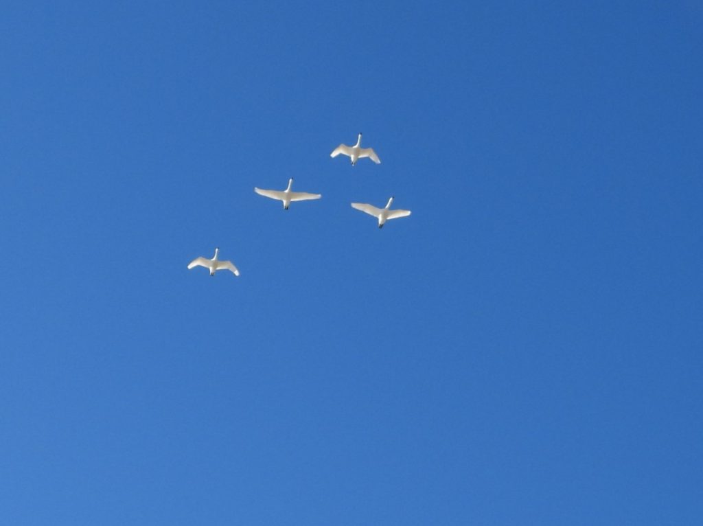 昨日は青空が広がって、どこへ行っても絶景と出合いました。午前は柿崎区、吉川区の平野部で動いたのですが、頸城三山や米山さんが輝いていましたね。何よりもうれしかったのは青空を飛ぶハクチョウを撮れたことです。米山を撮ろうとしていて、突然、頭上にハクチョウたちが鳴きながらやって来ました。大急ぎでカメラを構えたせいもあって、ピントがイマイチ合っていませんでした。心の準備ができていれば、連写で撮れたと思うのですが、残念です。米山さんの写真にはハクチョウも入っています。
