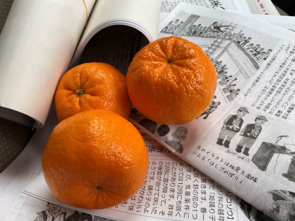 昨日は活動レポートのポスト下ろしと「しんぶん赤旗」日曜版の配達でした。雪が少なかったので夏場と同じペースで仕事ができました。直江津に行く途中、ある家で「足摺岬」という名前のミカンをいただきました。初めて食べたミカンでしたが、とても美味しかったです。下のそのミカンです。