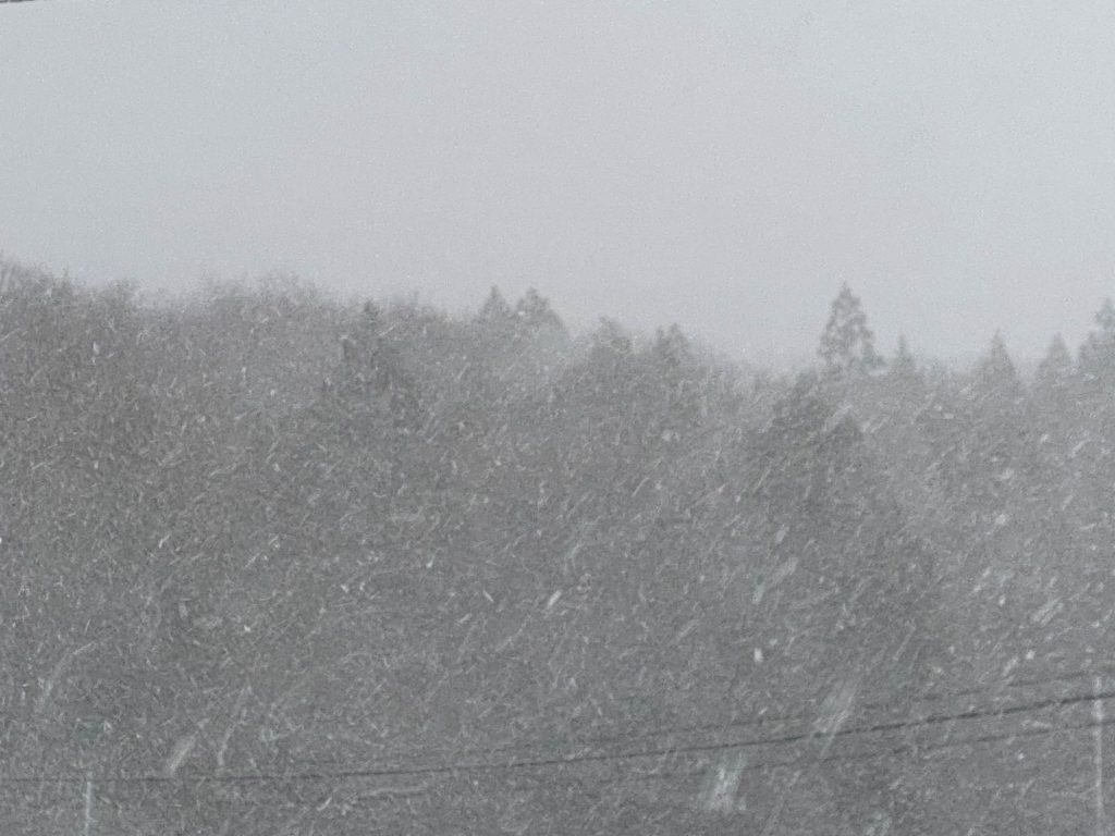おはようございます。今朝は細かい雪が断続的に降っています。こういう降り方がはじまると積もるんですよね。下の写真はわが家の前庭から撮った写真です。