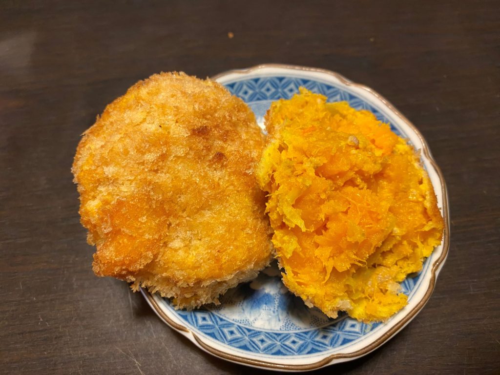 午後からの配達では除雪ブルとよく出合いました。通行する車のことも考えて、きちんと除雪作業をしてくれる、ありがたいですね。民家も除雪機が活躍していました。車が近くを通る時には雪飛ばしを一時ストップさせる、これもルールみたいになっていますね。雪国の人ならではの素敵な配慮だと思います。配達が終わってから、従兄のパートナーからもらったカボチャコロッケをいただきました。美味しかったです。