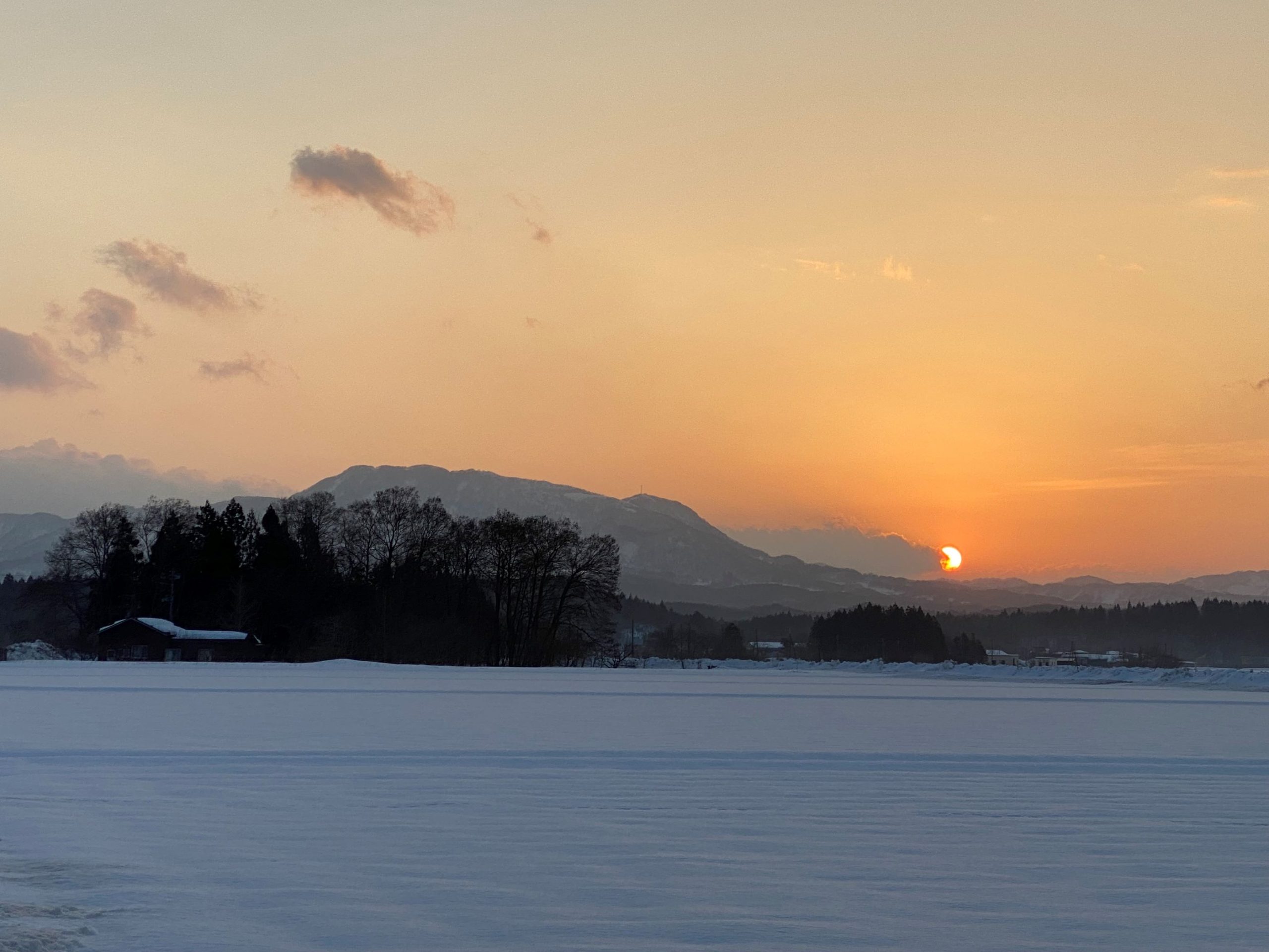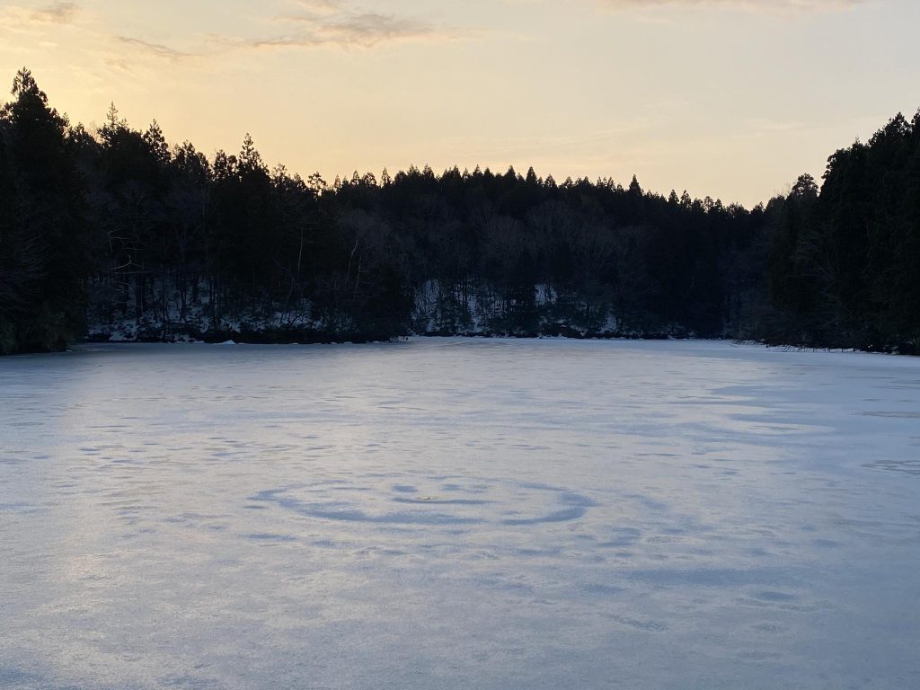 おはようございます。今朝は「しんぶん赤旗」日刊紙の配達があったのですが、途中で2つほど用があり、時間がかかりました。そのかわり、いいことがありましたよ。1つは久しぶりにきれいな日の出を見れたことです。トップ画像がそれです。柿崎区上直海にて撮影しました。そして、竹直の池です。この池は小苗代の池と並んで面白いことがよく起きる池ですが、今朝はニコニコマークが出現していました。下の写真をご覧ください。