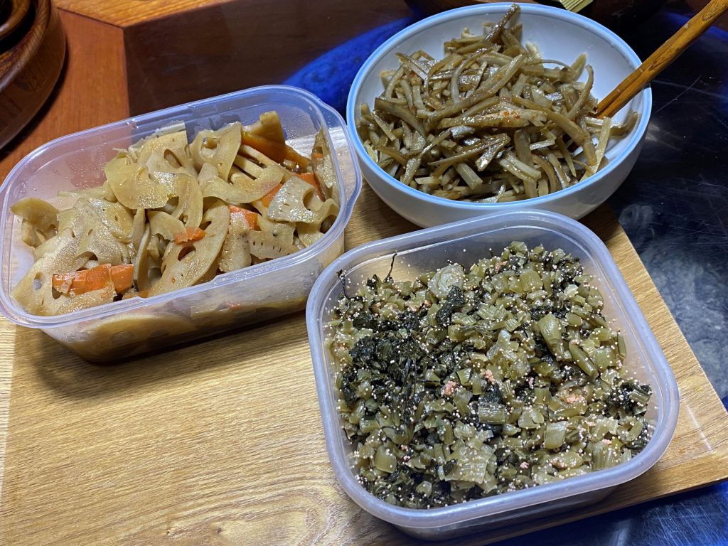 菖蒲を離れてからは、従兄の家に寄ってきました。コメをお願いしてあったからです。夕方でしたが、お茶をご馳走になってきました。従兄のパートナーさんから美味しい煮物、炒め物などを出していただきました。写真でお楽しみください。
