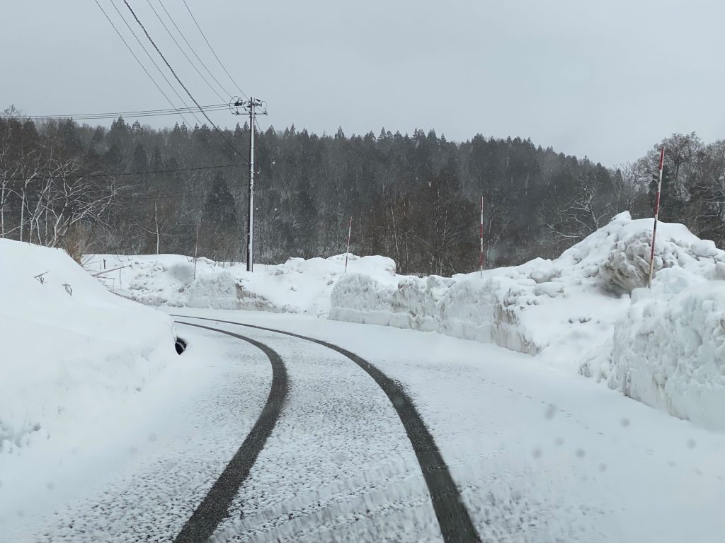 おはようございます。今朝は7時少し前に起床しました。雪は5㌢ほど降ったのみ、問題はこれから。今朝の降り方を見ると、今後、さらさらと降る感じがします。下の画像は地元事務所への道、今朝の撮影です。
