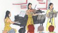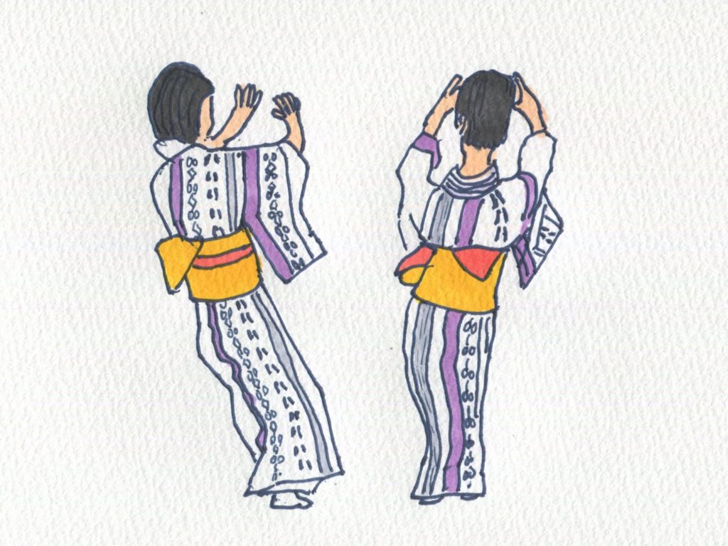 夜は冬季オリンピックのクロスカントリー競技を観戦した後、イラストを何枚か描きました。そのうちの1枚は踊りです。素敵な女性、2人を描きました。