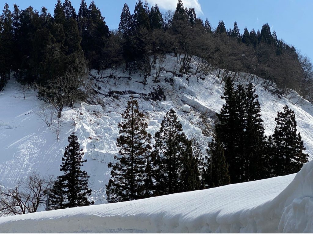 昨日は、「しんぶん赤旗」の配達をしました。大島区と吉川区の一部です。上着を脱ぎたくなるほど気温が高かったので、快適だったのですが、山間部では雪崩が発生していました。これは「春の訪れ」を知らせるものではありますが、道路や住宅を襲うととても危険です。空き家の大量の屋根雪が落ちたところもありました。下は牛ヶ鼻の裏山の雪崩です。気温が上昇していなければ上川谷も行きたかったのですが、雪崩が怖くて断念しました。