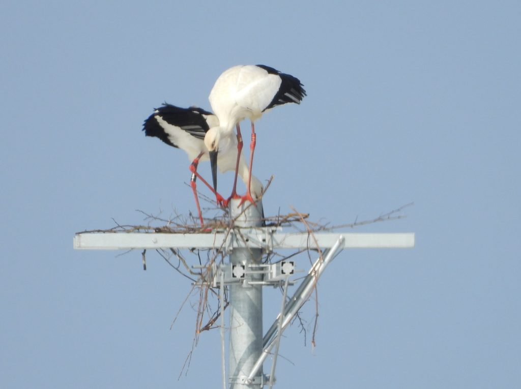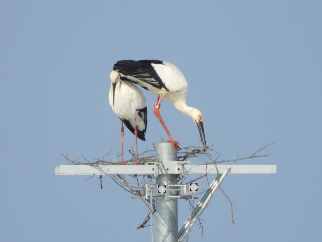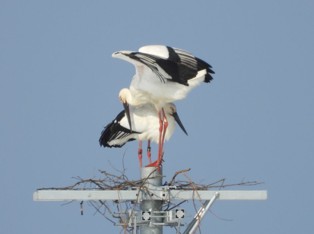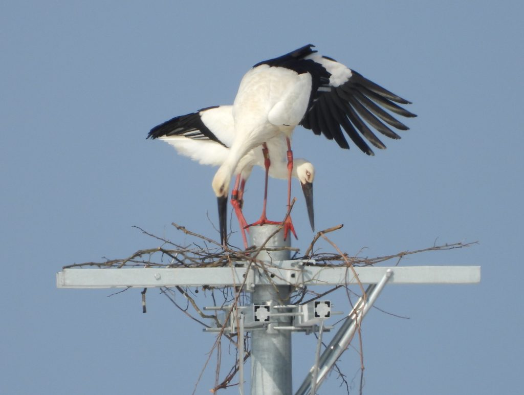 昨日は午前にコウノトリの交尾の様子を2回も見ました。昨年の2月15日も2回見たのですが、それ以来です。今回はバレンタインデーでの交尾ですので、「バレンタイン交尾」と呼ぶことにします。私の勘ですが、産卵、子育てにつながる交尾だと確信します。昨日のブログでは静止画像で交尾の様子をご覧いただきましたが、YouTubeでは小枝を巣に運んでいるところ交尾をしているところの2本をアップしましたので下線の付いたところをクリックしてご覧ください。昨日アップした静止画像以外でも静止画像が数十枚あります。そのうちの数枚をアップします。
