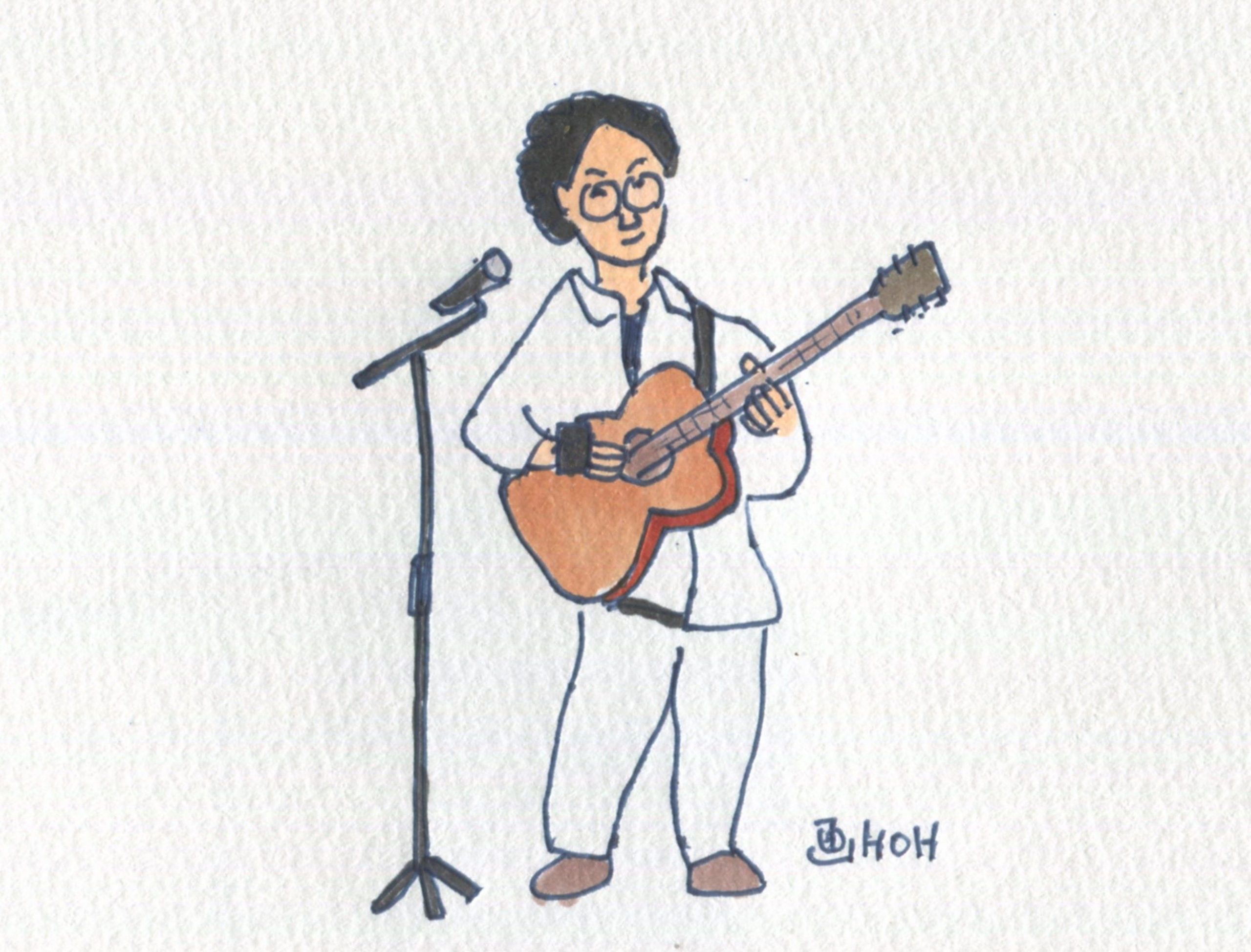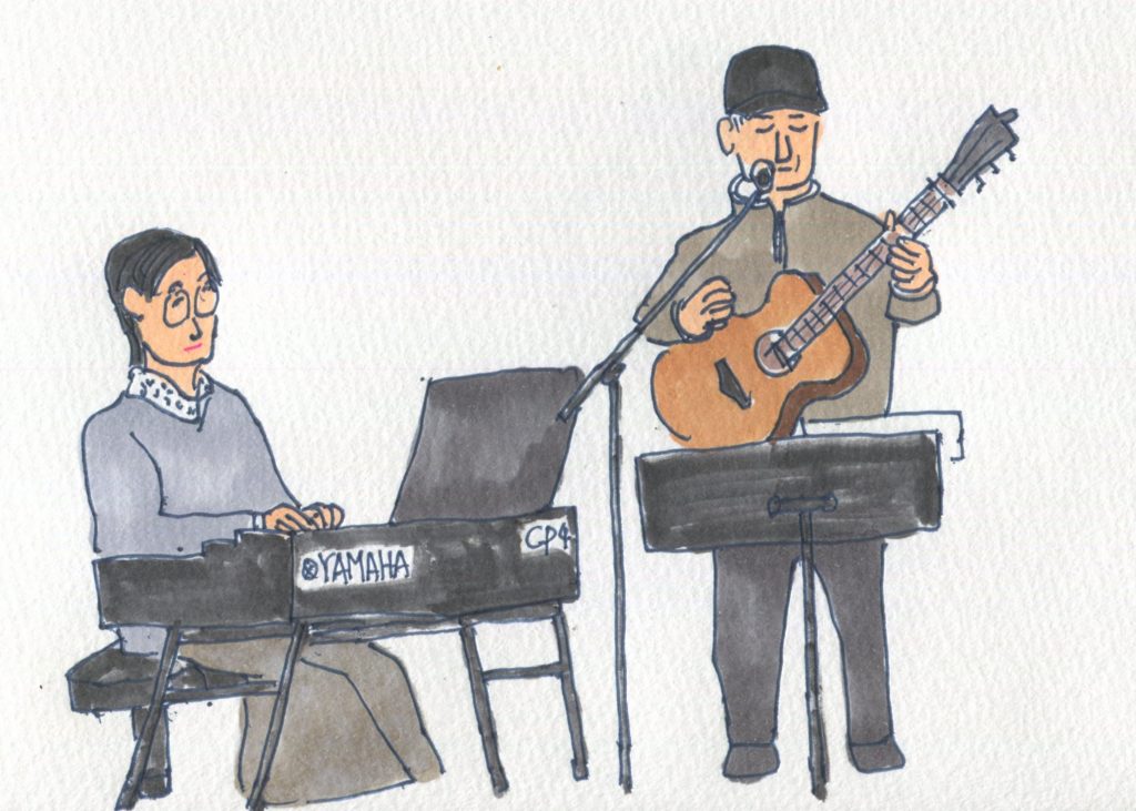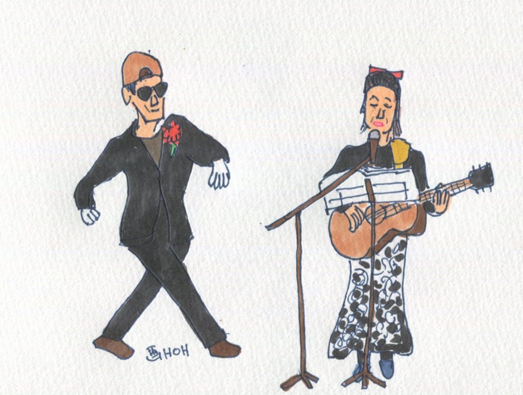 午後3時過ぎからは、ギターの星文昭さんから直接お誘いを受け、ライオン像のある館で開催されていた寄り道ライブに行ってきました。半年ぶりくらいかも知れません。星さんのギターは二度目、感動でした。忙しい合間をぬっての参加でしたが、出かけて良かったです。「グラトンモスキュート」という歌と踊りのユニットの見事なパフォーマンス、新鮮でした。川合徹人さんや佐藤きよしさんなど懐かしい人たちとも再会できました。トップのイラストは星さんです。