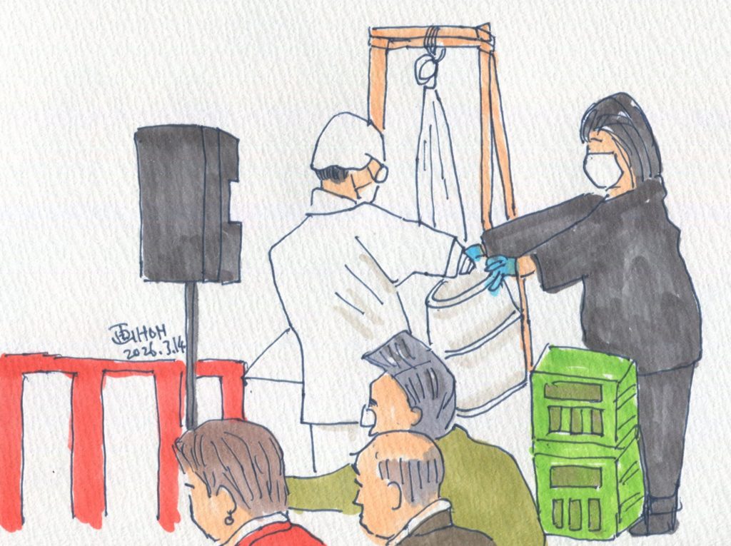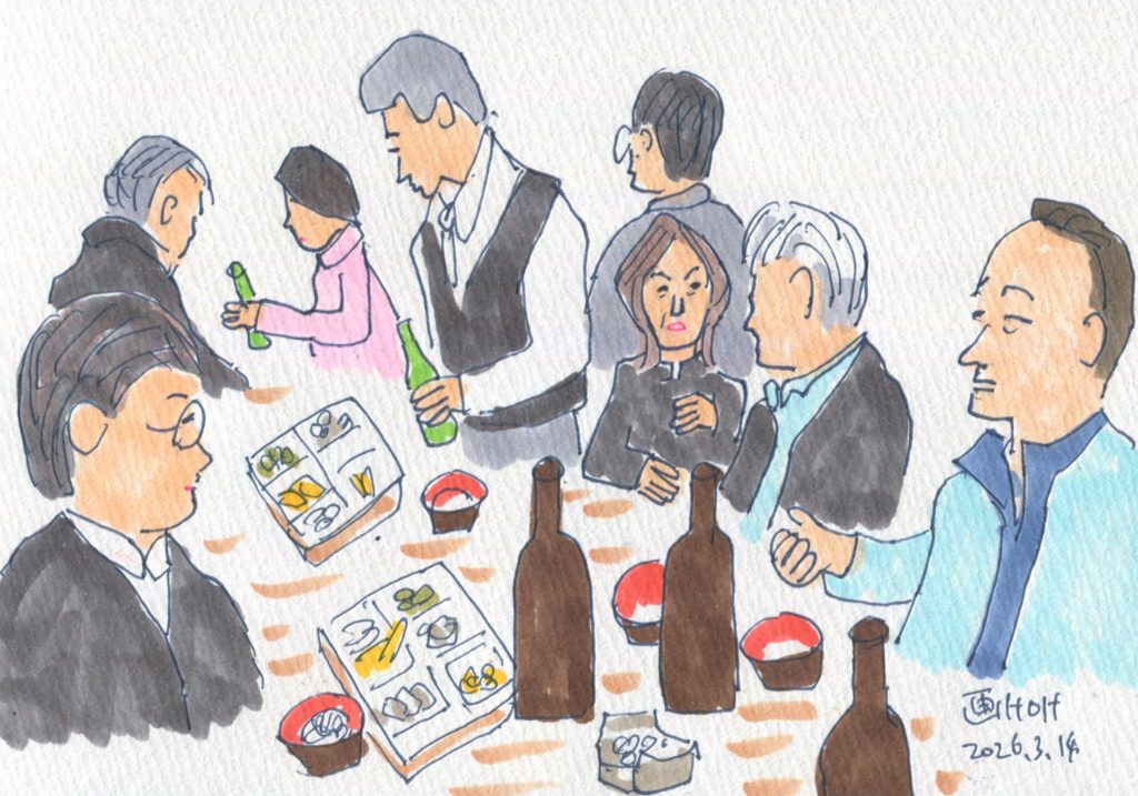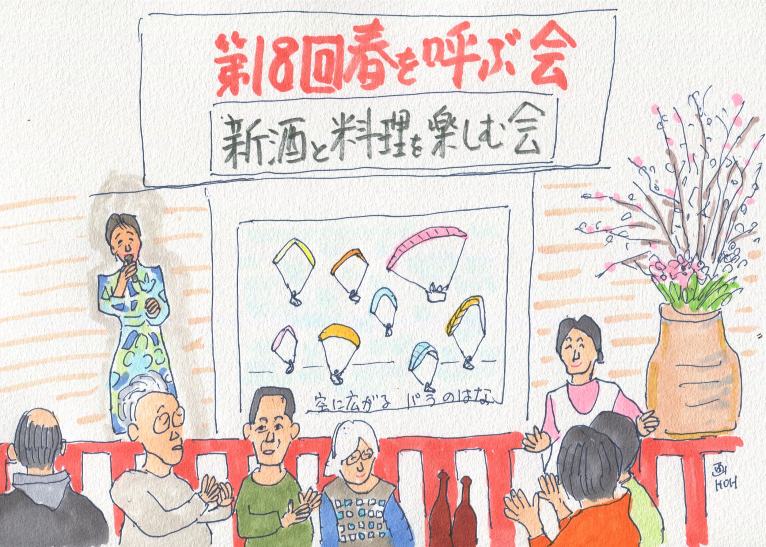 交流の時間帯、知っている人だけでなく、初めてお会いする人からも、「いつも『春よ来い』を楽しみにしています」「イラスト、いつ描いているんですか」「コウノトリはいつ頃、ヒナが誕生しますか」「葬儀、続いてたいへんでしたね」などと声をかけていただきました。うれしい交流ができました。