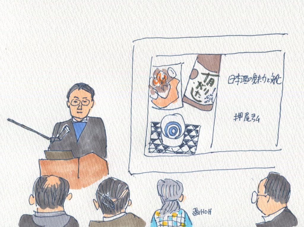 会では吉川観光協会の八木会長が主催者代表で挨拶し、その後、日本酒伝道師の押尾弘さんが、「日本酒の魅力と文化」と題してミニ講演してくださいました。スライドを使った講演はわかりやすく、地元にいい酒があることは大きな宝だと思いました。