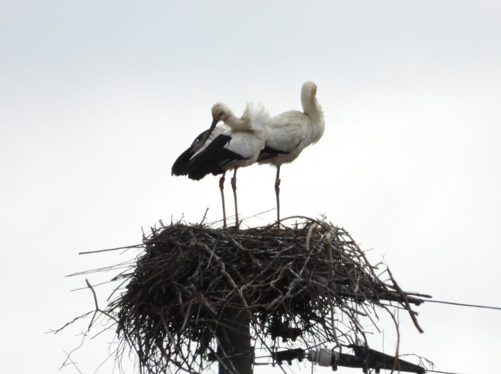 昨日は、朝食を食べてから、気になっていた三和区のコウノトリの巣の状況を見に行ってきました。巣の上には2羽が並んで立っていました。ここ数日はこの光景が見られます。そうした状況から言って、三和区のコウノトリの巣は、昨年子育てをした個体番号J0239のオスが個体番号J0302のメスと新たにペアを組み、実権を握った模様です。この結果、一時、この巣に数日間いた個体番号J0645のオスと個体番号J0682のメスのペアは近づけなくなりました。下の写真の左はメス、右はオスです。