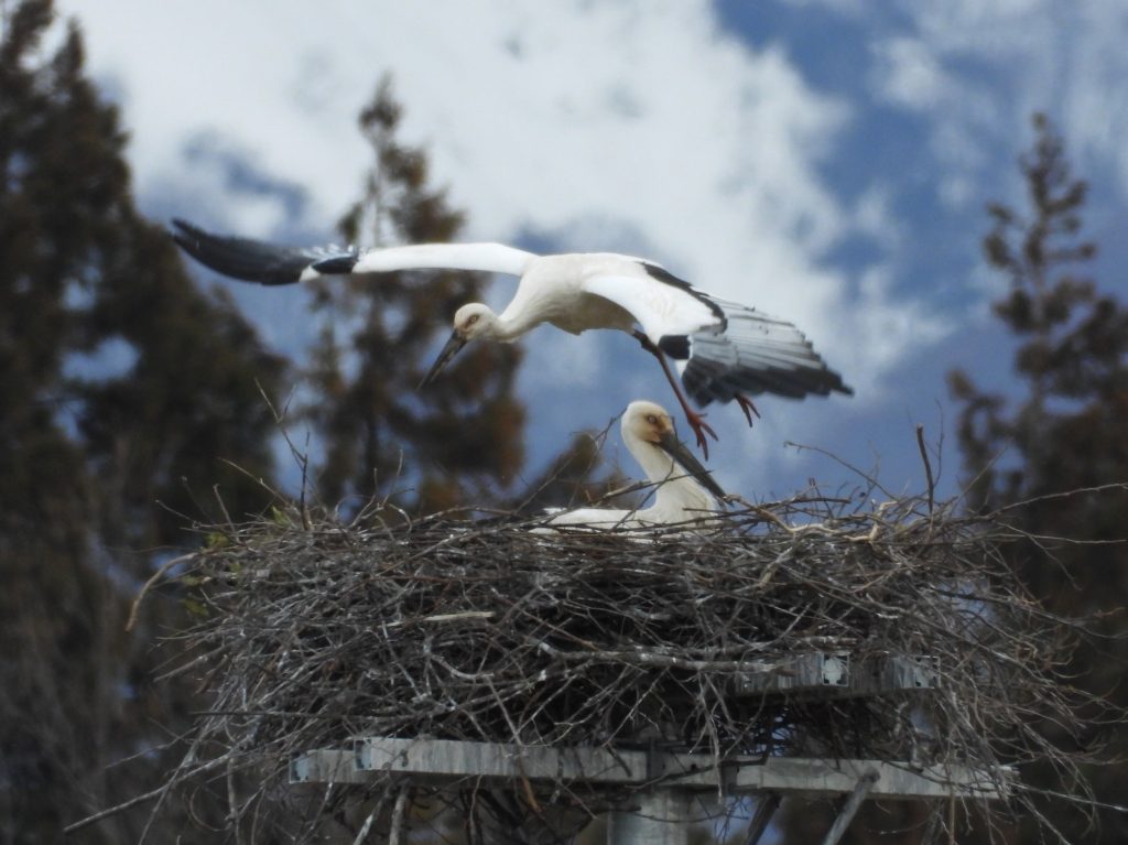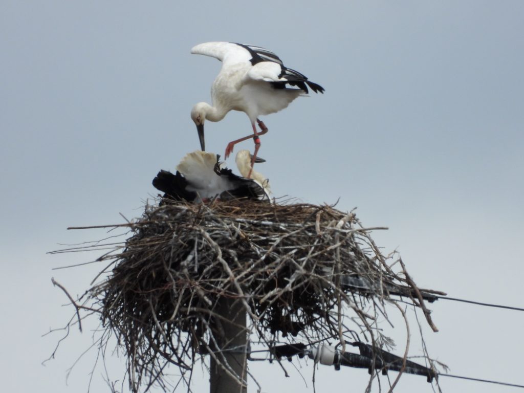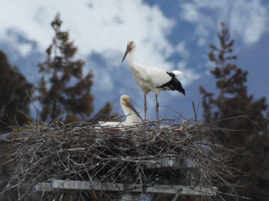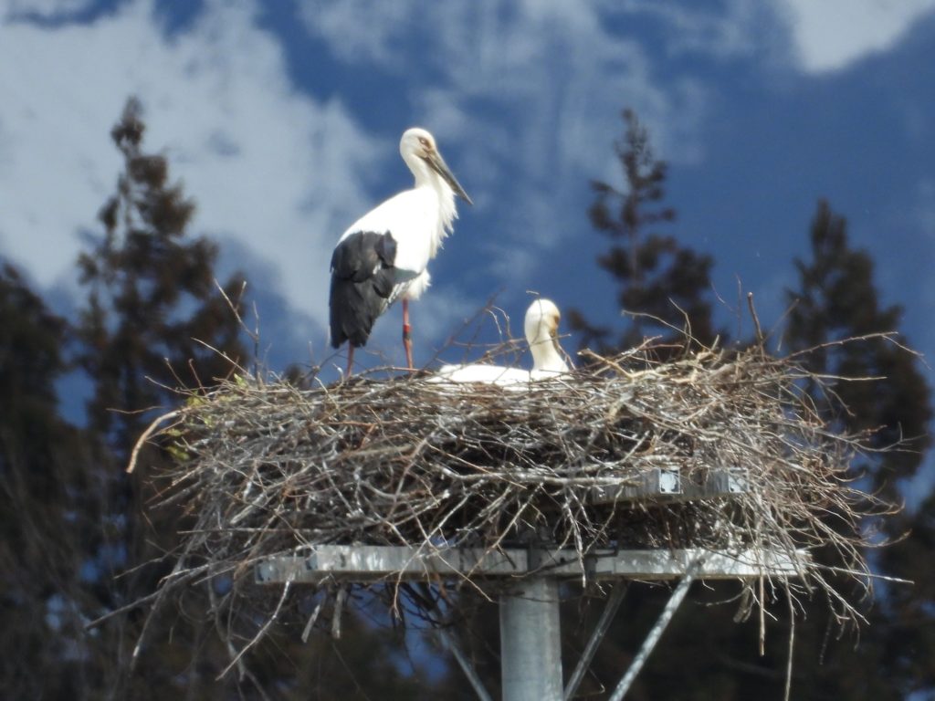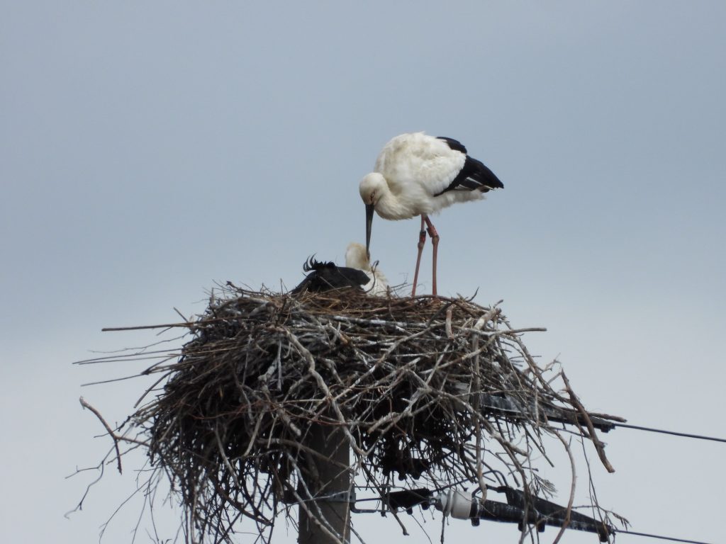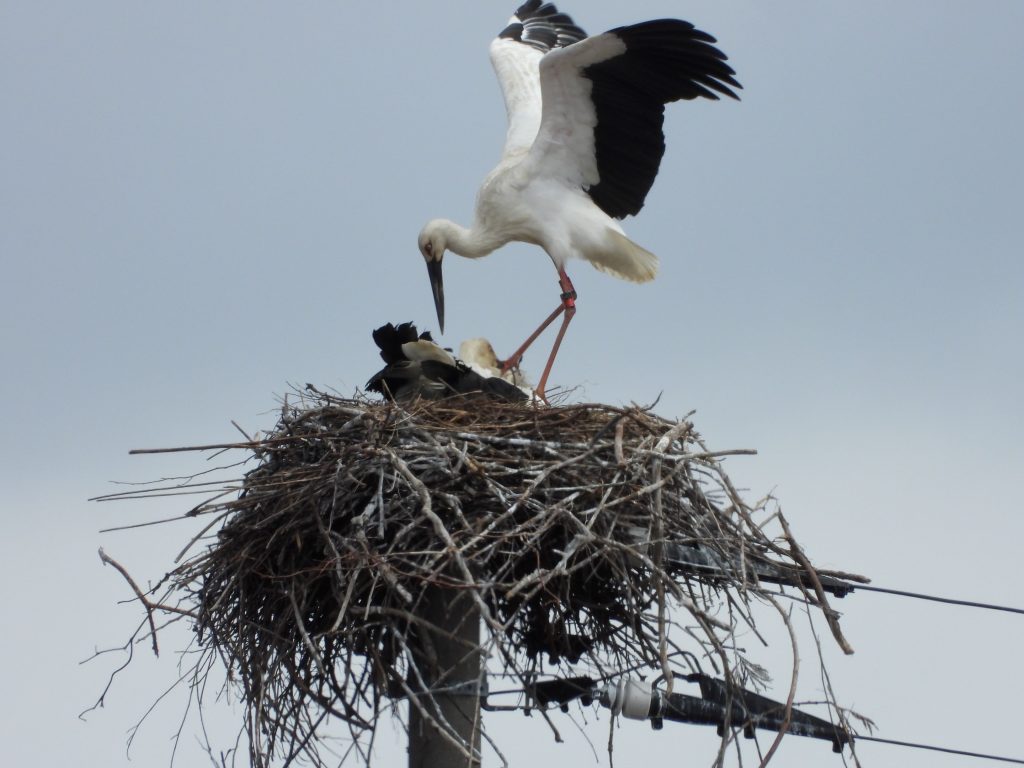 昨日は地元事務所で日本共産党の第8回中央委員会総会の決定文書を読み続けました。先の衆院選の総括もあり、次期党大会のむけての方針が示された文書はいつもよりも長くなっています。まだ、全部、読み終わっていません。途中で何回もコウノトリの巣を観察に出かけました。というのも、一昨日、巣を奪おうと個体番号J0682のメスが執拗に攻撃してきたこともあって、気になっていたのです。巣の上では。いつものペアが一緒にいる時間が長く感じられました。でも、昨日はこのメスの姿は見えませんでした。下は日中の日が当たっていた時の巣の上の様子です。動画も撮りました。