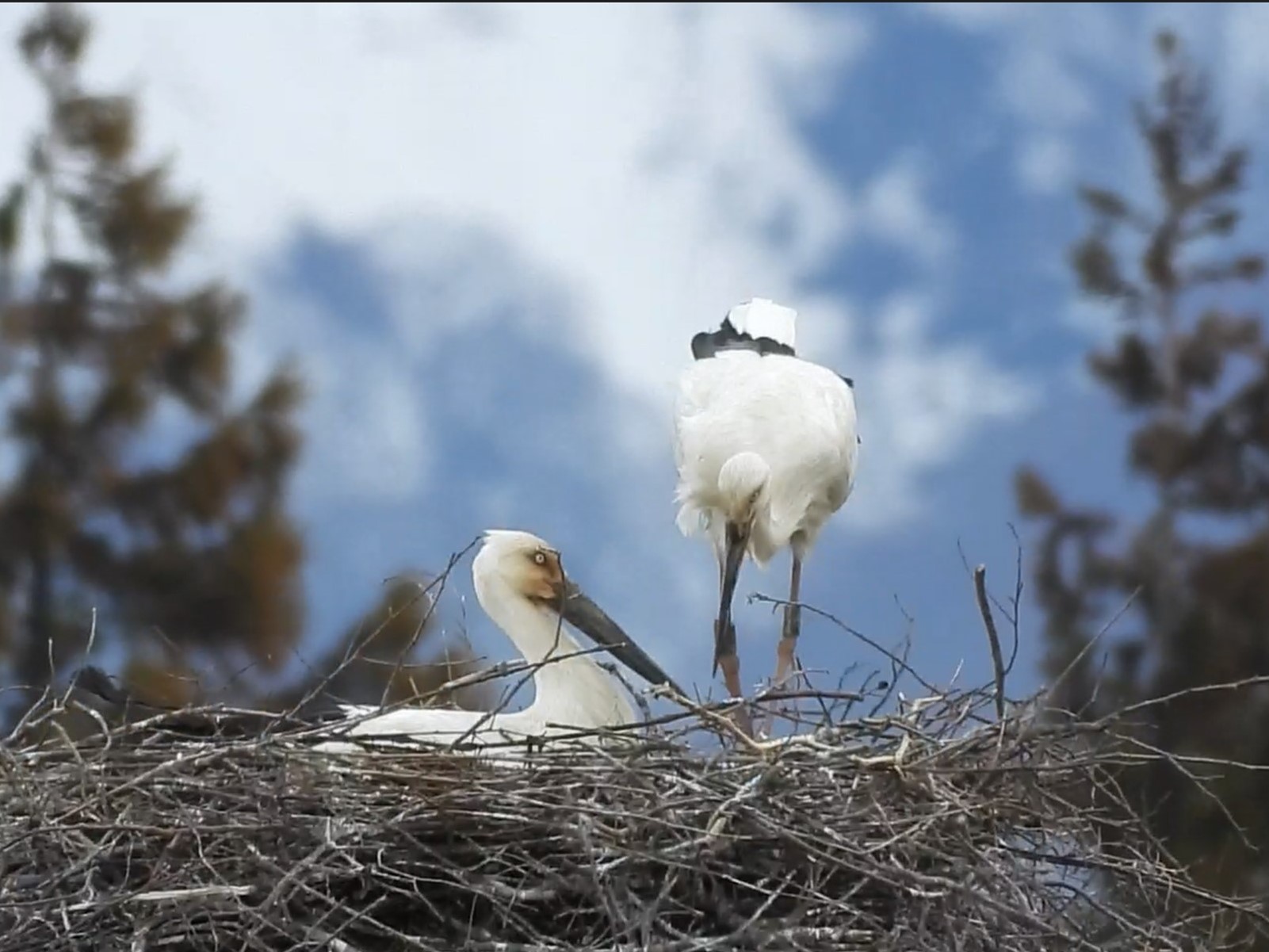 昨日は地元事務所で日本共産党の第8回中央委員会総会の決定文書を読み続けました。先の衆院選の総括もあり、次期党大会のむけての方針が示された文書はいつもよりも長くなっています。まだ、全部、読み終わっていません。途中で何回もコウノトリの巣を観察に出かけました。というのも、一昨日、巣を奪おうと個体番号J0682のメスが執拗に攻撃してきたこともあって、気になっていたのです。巣の上では。いつものペアが一緒にいる時間が長く感じられました。でも、昨日はこのメスの姿は見えませんでした。下は日中の日が当たっていた時の巣の上の様子です。動画も撮りました。