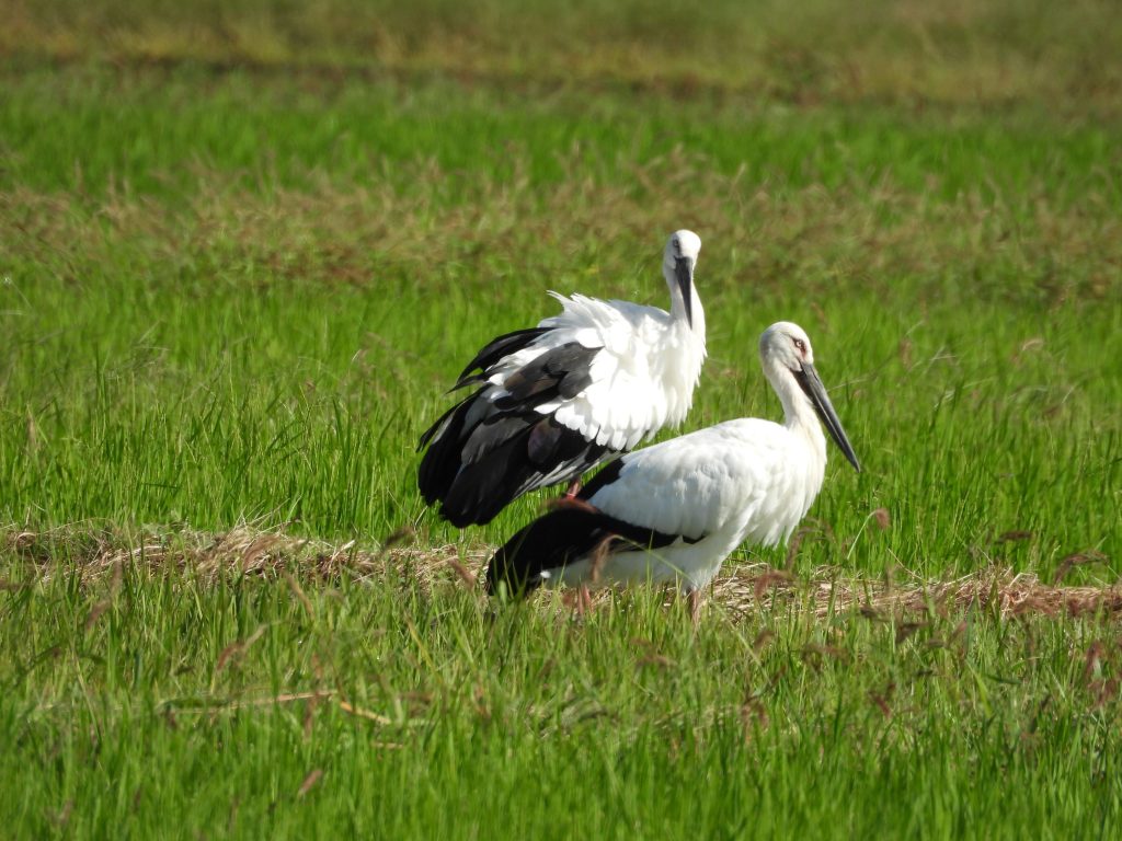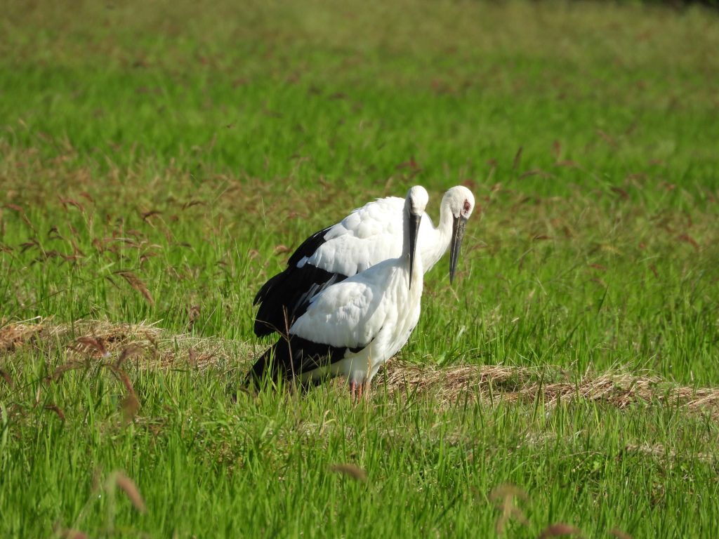 昼食会では来賓のみなさんと交流し、上越市と荒川区の交流の在り方を含め、有意義な意見交換ができました。話題となったことの1つは、ここでもコウノトリです。まだ、近くにいますよ、と言うとびっくりされていましたね。そのコウノトリですが、今朝は小苗代の用水路脇の土手の上でのんびりとしていました。ここではエサもあるのでしょうが、落ち着いてのんびりできる場所になっているようです。また、しばらくは親鳥ペアの姿を楽しめそうです。下は今朝の写真から。