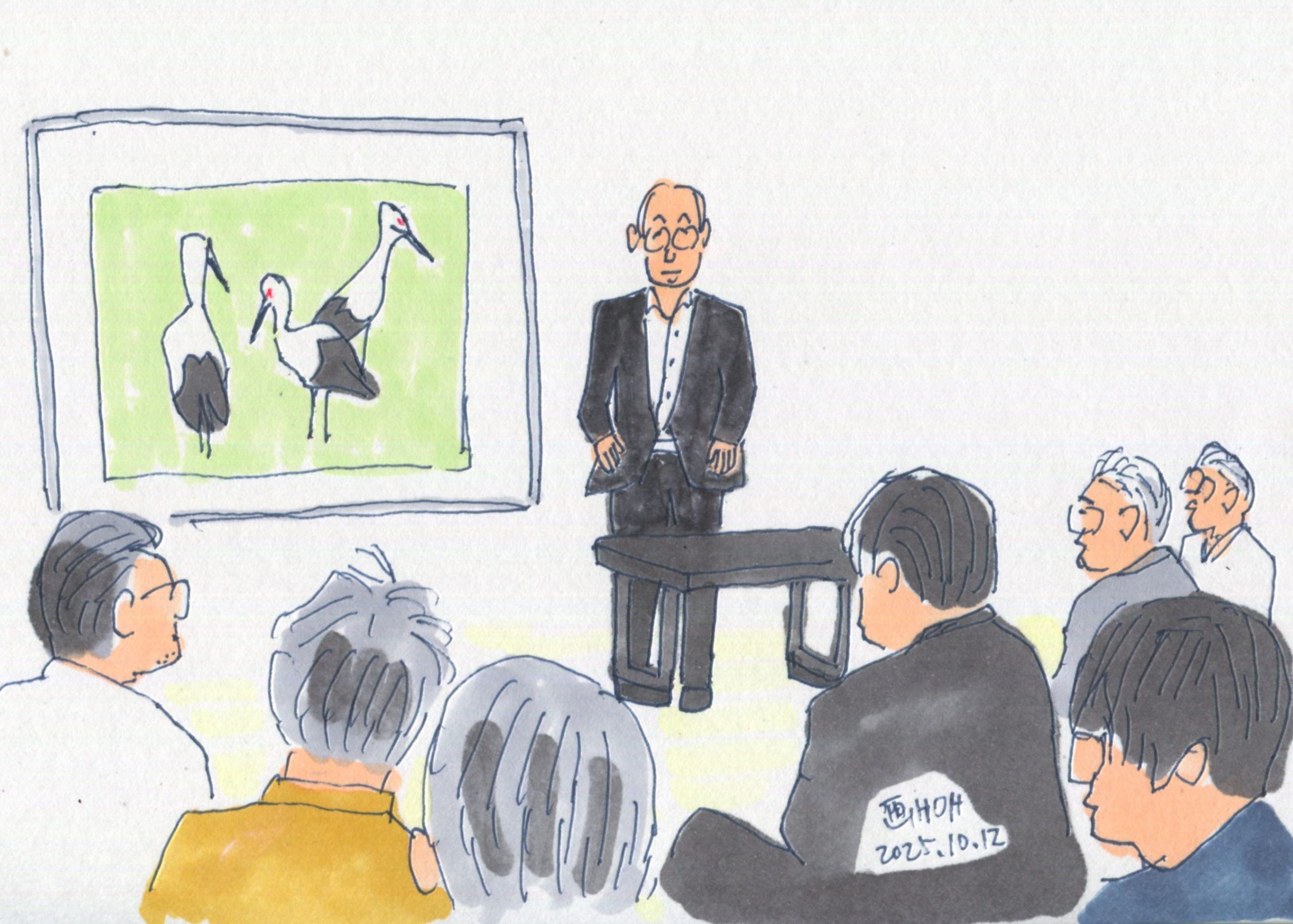 午後からは頸北地域の退職校長会の研修会でした。私はこの会でコウノトリの観察報告をしてきました。参加者の半分くらいは私や子どもたちがお世話になった先生でした。学校の幹部だった方たちが対象でしたので、最初はどうなるかと心配したのですが、学校の子どもたちと同じように、「おおー」とか「わー、すごい」などといった声を出したり、笑ったり、びっくりしたり……。報告では、ここ数年の動きやコウノトリの観察で気づいたことなどを中心に語りましたが、大人にしか話せないこともとりあげました。私も楽しみながら話をすることができました。最後は『コウノトリさん、ありがとね』を聴いていただきました。