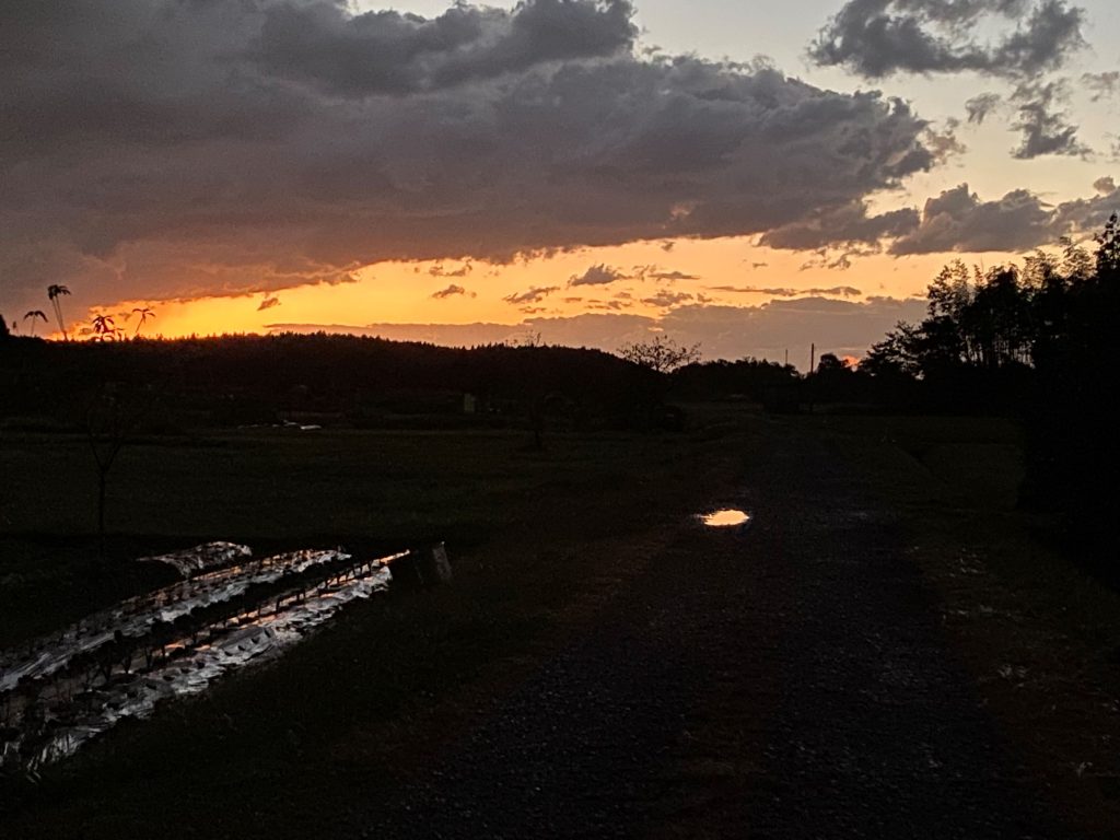 夕方、家に戻った時、夕焼けがきれいでした。ただ、撮影は少し遅れました。