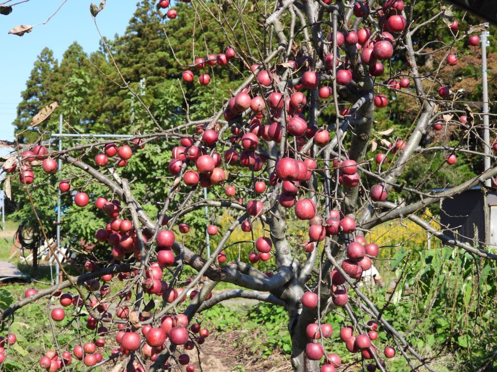 三和区の近くでは畑に見たことのない、赤い実が生っていたので、車を止めると小さなりんごでした。柿でいえば、姫柿みたいなものです。見るからにすっぱそうなりんごでしたが、一度、食べてみたいものです。三和区ではコウノトリの巣の現状を見てきました。まだ、しっかりとしていました。