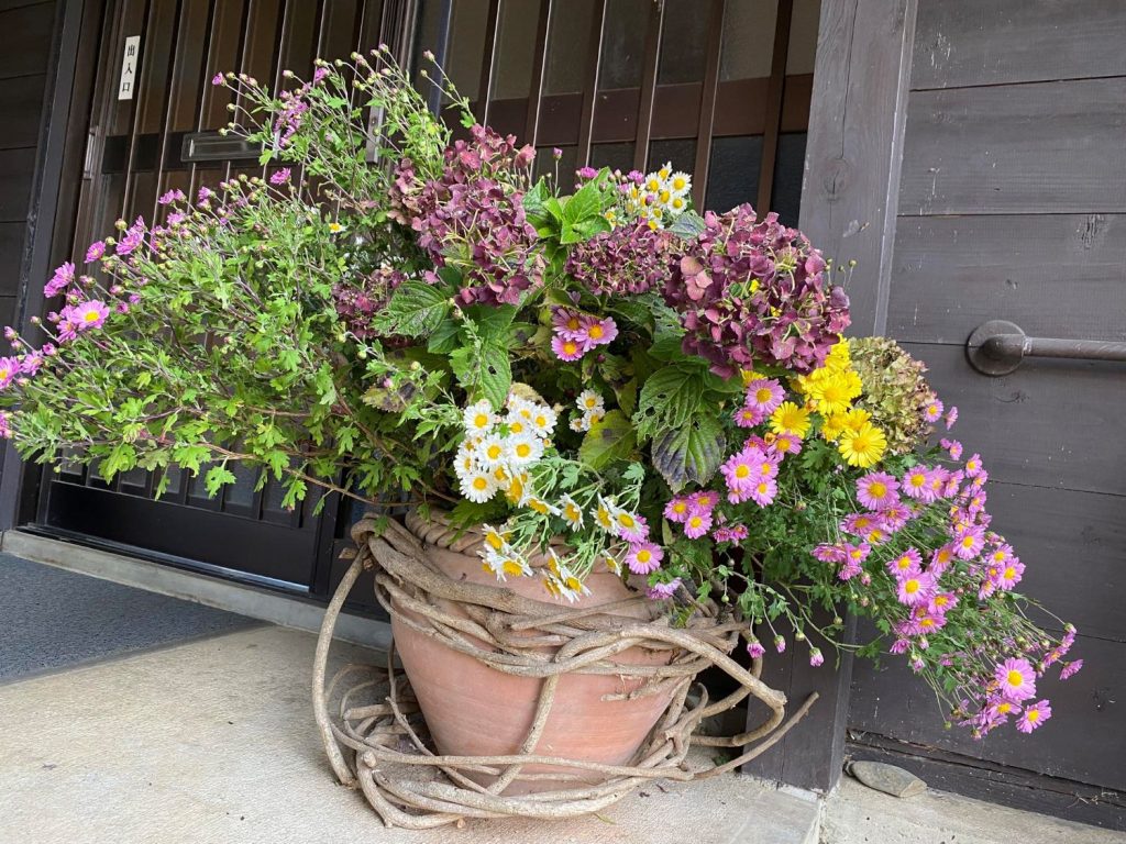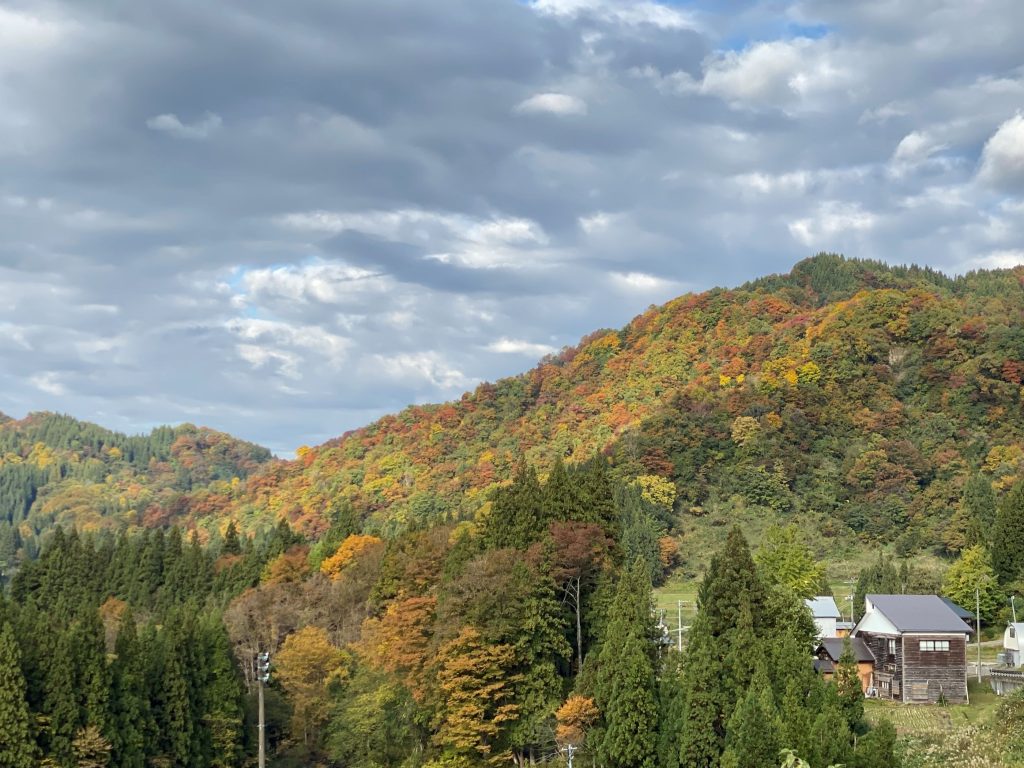 大島区では正面倉や牛ヶ鼻の紅葉が素敵でした。いつもの家では、今年最後の生け花写真を撮らせてもらいました。キクがいっぱい入った作品です。また来年もよろしくお願いします。漬物もよろしくお願いします( ´艸`) 下は牛ヶ花の紅葉写真と生け花写真です。