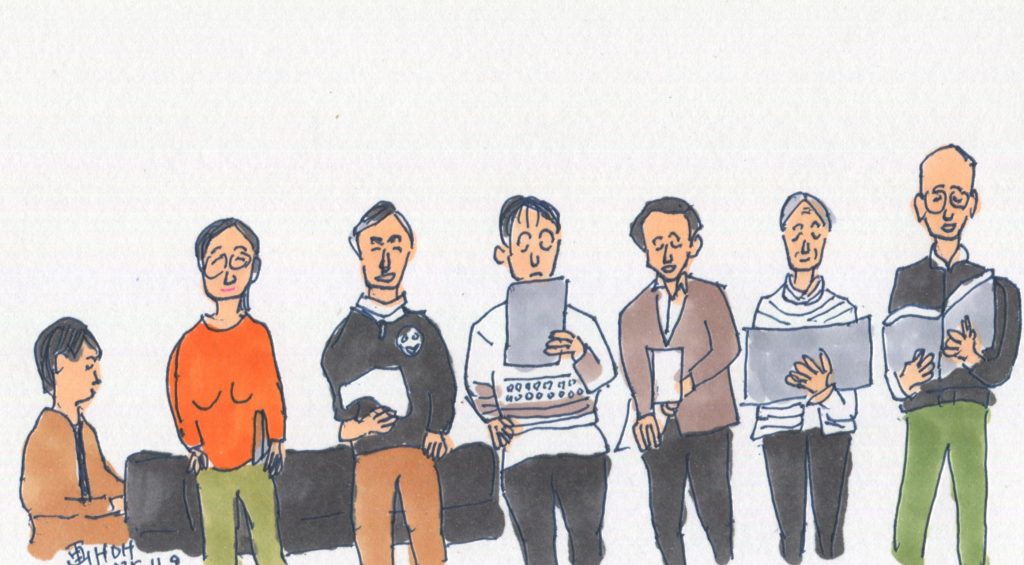 講演が終わってからは第2部として歌声もありました。合唱グループ、「たけのこ」のみなさんがリードして「もみじ」「ふるさと」「青い空は」などをみんなで歌いました。このグループはあちこちで活躍しています。下は合唱の様子です。
