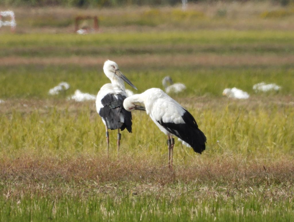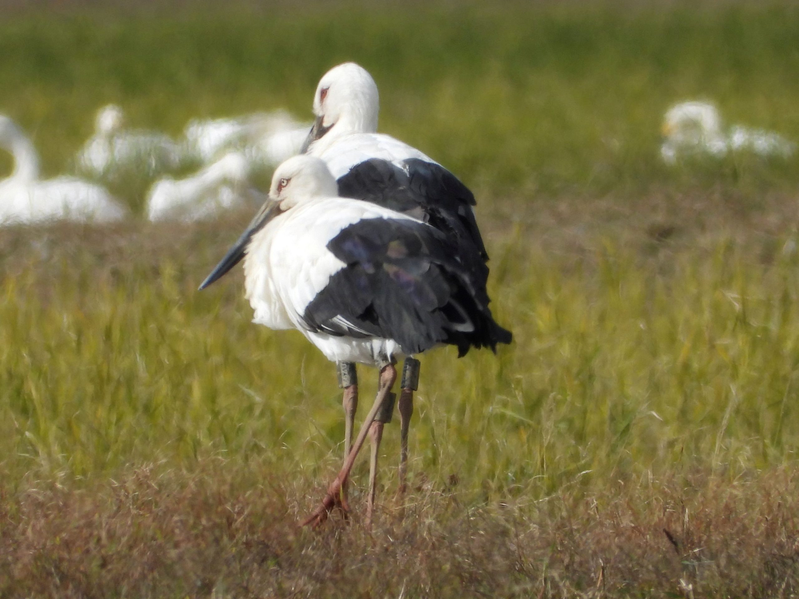 家に戻ってから画像を確認したところ、この2羽は個体番号J0792とJ0793であることがわかりました。昨年5月6日に生まれ、7月に巣立ったコウノトリです。私に連絡をくださった人によると、もう2羽いたといいますから、それらも確認したくなりました。
