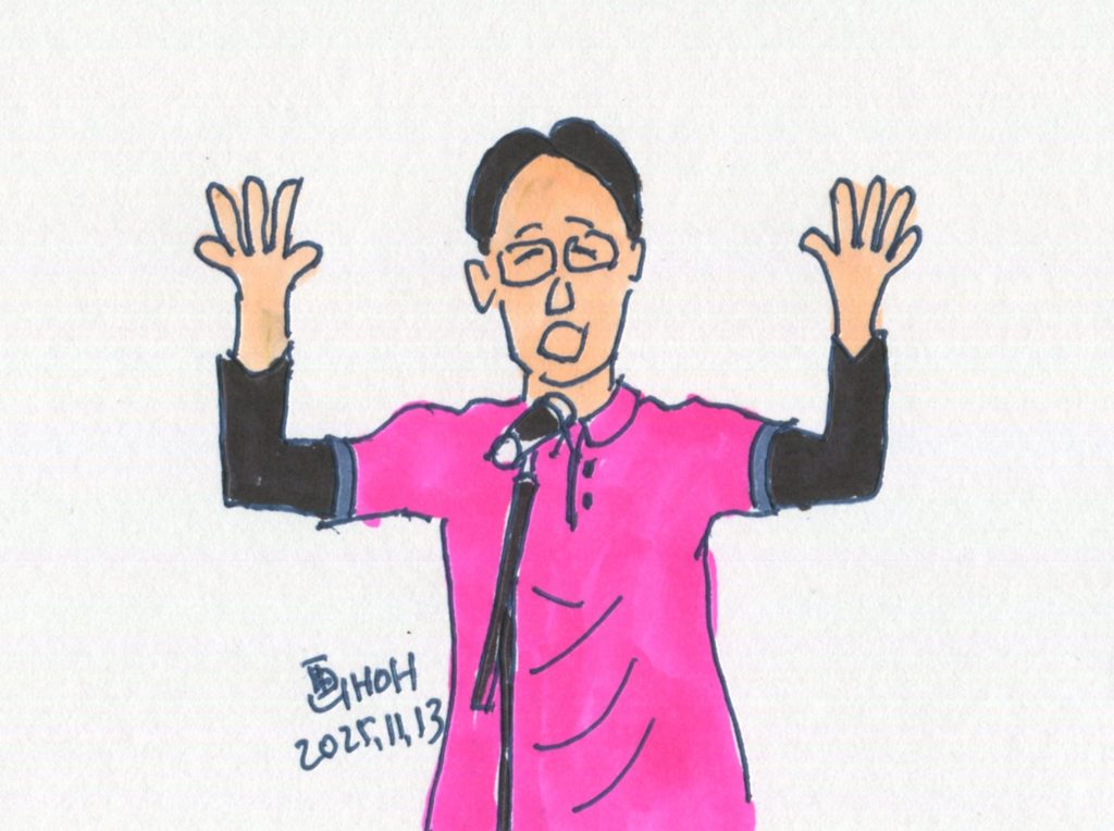 八木副市長、渡辺市議会議長に続いて私も挨拶させていただきました。そこでは市政のことだけでなく、昨年から吉川区で営巣したコウノトリの親たちや昨年、今年と2年連続で誕生した子どもたちの現状について報告しました。最近、コウノトリの動向が新聞などであまり報道されていないこともあって、親鳥や昨年誕生した子どもたちが市内にいることを初めて知った人が多く、驚きの声が上がっていました。