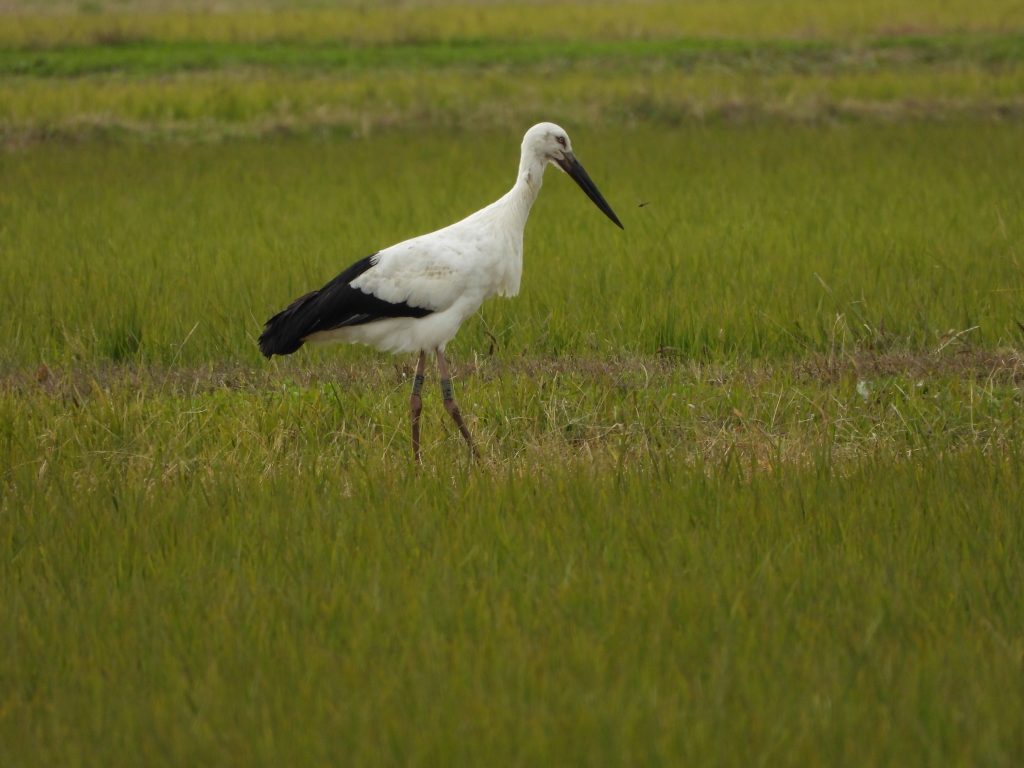 敬老会が終わってから大急ぎでクリーンセンター周辺の田んぼへ行きました。コウノトリ情報が相次いだからです。クリんセンターの南側の田んぼには、昨年吉川区で誕生したコウノトリが2羽いました。そのうちの1羽は個体番号がJ0795のメスのようです。最後の数字が「3」なのか「5」なのかいまひとつはっきりしませんが、字体から言って、かぎりなく「5」に近いと思っています。となると、先日見た個体番号J0792、J0793と共に、子どもたち3羽が近くにいたということになります。9月には今年生まれた子どもたちが3羽そろって北海道せたな町にいることがわかりましたが、昨年の子どももほぼそろって行動しているんですね。昨日は汚泥センター近くの田んぼに三和区のペアがいることも確認できました。下はJ0795と思われるコウノトリです。